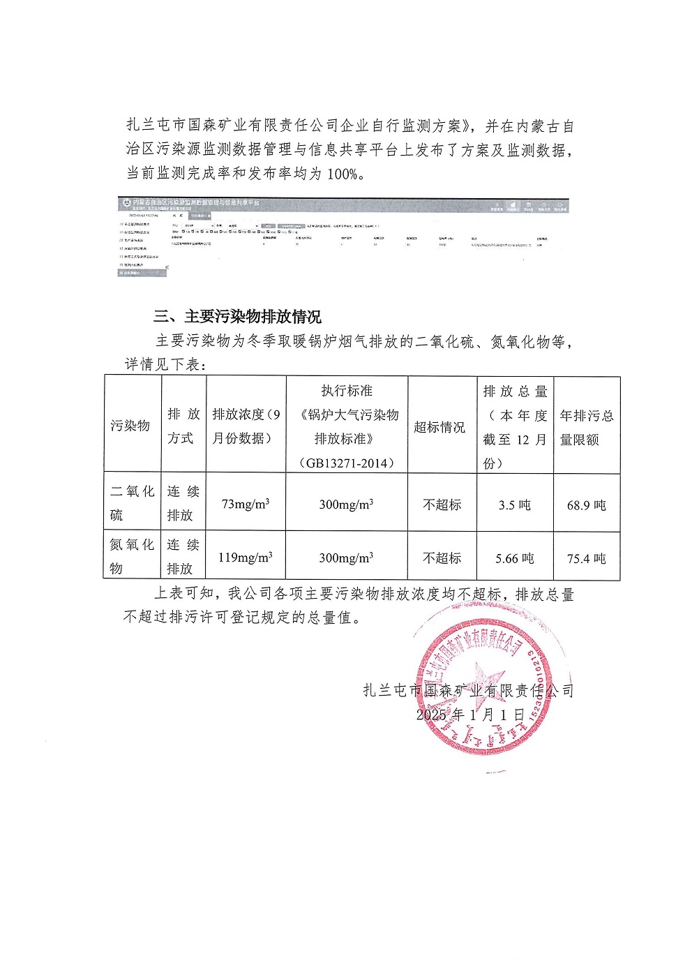 扎蘭屯市國(guó)森礦業(yè)有限責(zé)任公司重點(diǎn)排污單位環(huán)境信息公示